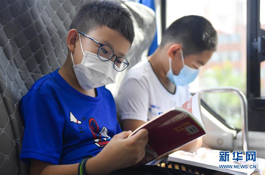 8月5日,小讀者在“流動(dòng)圖書(shū)館”里看書(shū)。三千冊(cè)圖書(shū),一輛大巴車,穿梭在城市的街頭巷尾。在吉林長(zhǎng)春,長(zhǎng)春市圖書(shū)館利用流動(dòng)圖書(shū)車,定期在市內(nèi)15個(gè)固定服務(wù)點(diǎn)間巡回流動(dòng),為市民提供便捷的圖書(shū)借閱服務(wù)。新華社記者許暢攝