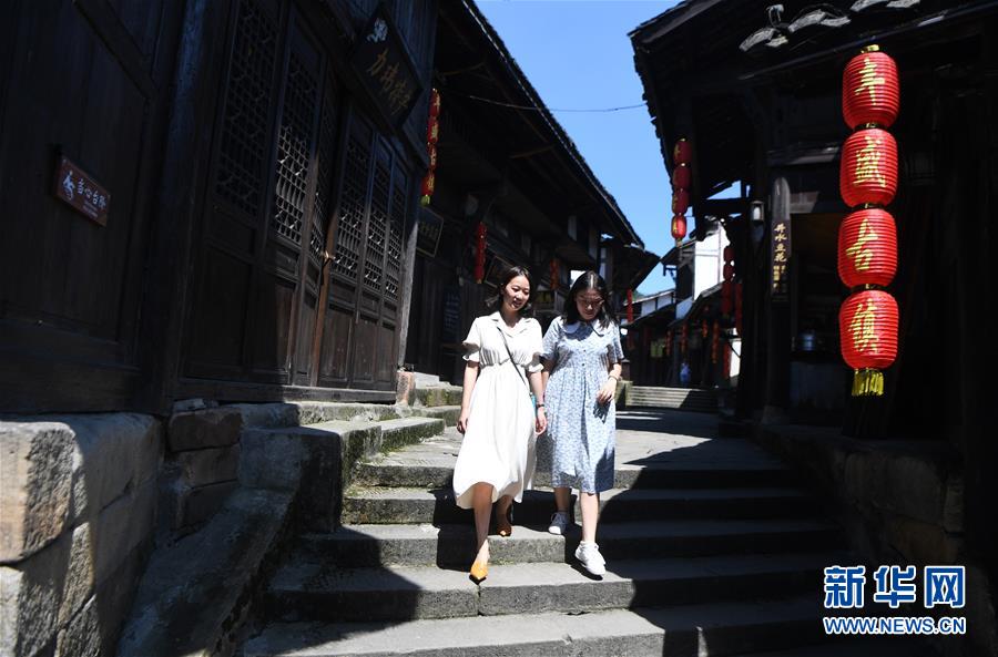 8月5日,游客在豐盛古鎮(zhèn)游覽。近年來,重慶市巴南區(qū)引入社會資本,按照“修舊如舊、適度開發(fā)”的原則對豐盛古鎮(zhèn)進(jìn)行保護(hù)性修繕和景區(qū)化打造,讓古鎮(zhèn)在保留原有歷史人文風(fēng)貌的同時(shí),煥發(fā)新活力。新華社記者王全超攝