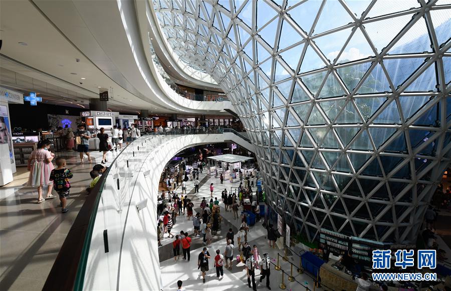 8月6日,游客在三亞國際免稅城購物。