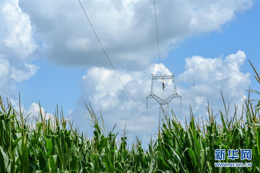 8月6日,送電工楊連才在吉林省長春市城郊的一處輸電鐵塔下施工作業(yè)。吉林省長春市連續(xù)多日出現(xiàn)高溫天氣,國網(wǎng)長春供電公司輸電運檢中心的送電工們每天清晨開始作業(yè),不畏烈日“烤”驗,堅守工作崗位,確保工程按計劃完成。新華社記者張楠攝