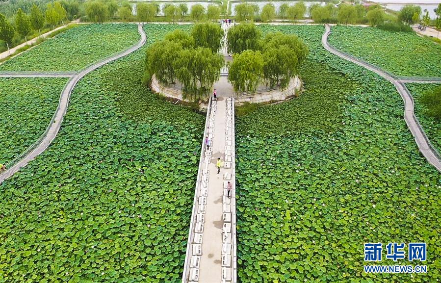 8月6日,游客在河北省永清縣里瀾城鎮(zhèn)金華湖觀賞荷花(無(wú)人機(jī)照片)。夏日時(shí)節(jié),河北省永清縣里瀾城鎮(zhèn)金華湖荷塘的荷花爭(zhēng)相開放,吸引市民和游客前來(lái)游玩觀賞。新華社記者李曉果攝
