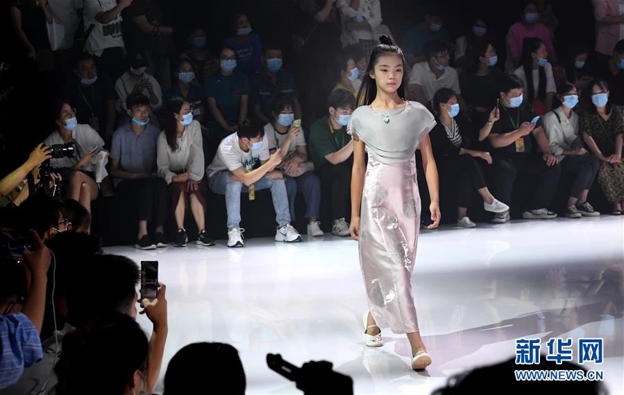 8月7日,小模特在T臺上展示童裝。當日,2020中國(河南)國際大學生時裝周舉行童裝設計專場展示。8月5日至7日,2020中國(河南)國際大學生時裝周在河南省新密市豫發(fā)密蘭小鎮(zhèn)舉行。新華社記者朱祥攝