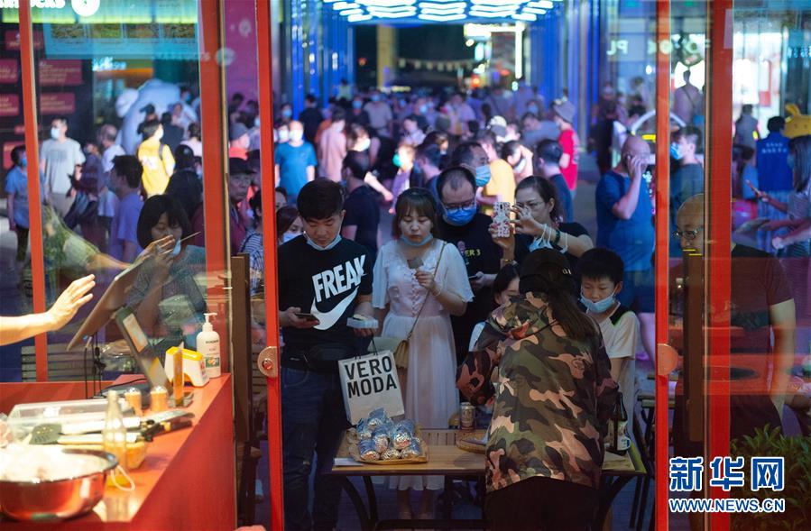 8月8日晚,市民在望京小街商業(yè)街購(gòu)買小吃。新華社記者 陳鐘昊 攝