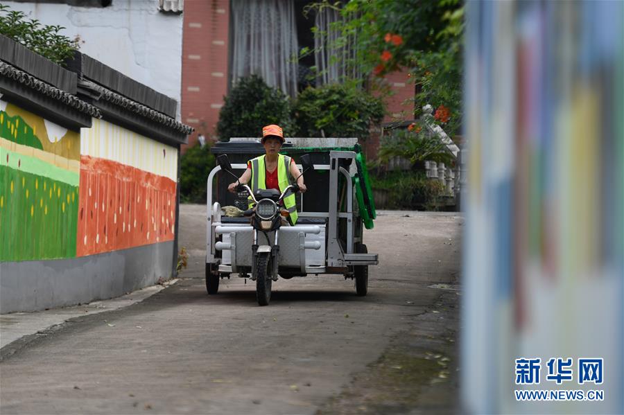 湖州市吳興區(qū)妙西鎮(zhèn)龍山村清運(yùn)人員在村里收集生活垃圾(8月5日攝)。近年來,浙江省通過創(chuàng)新宣傳教育,多措并舉促進(jìn)垃圾分類投放、收運(yùn)及處置的良性循環(huán),引領(lǐng)垃圾分類成為城鄉(xiāng)居民的生活新風(fēng)尚。新華社記者黃宗治攝。