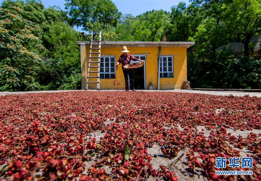 8月9日,武安市徘徊鎮(zhèn)后李甲村農(nóng)民在涼曬采摘的花椒。近日,河北省武安市花椒進(jìn)入收獲季節(jié),當(dāng)?shù)剞r(nóng)民搶抓農(nóng)時(shí),花椒種植基地里一派忙碌景象。近年來(lái),武安市將花椒產(chǎn)業(yè)作為脫貧增收的重要抓手,因地制宜擴(kuò)大花椒種植規(guī)模。目前,全市花椒種植面積約12萬(wàn)畝。新華社記者王曉攝。