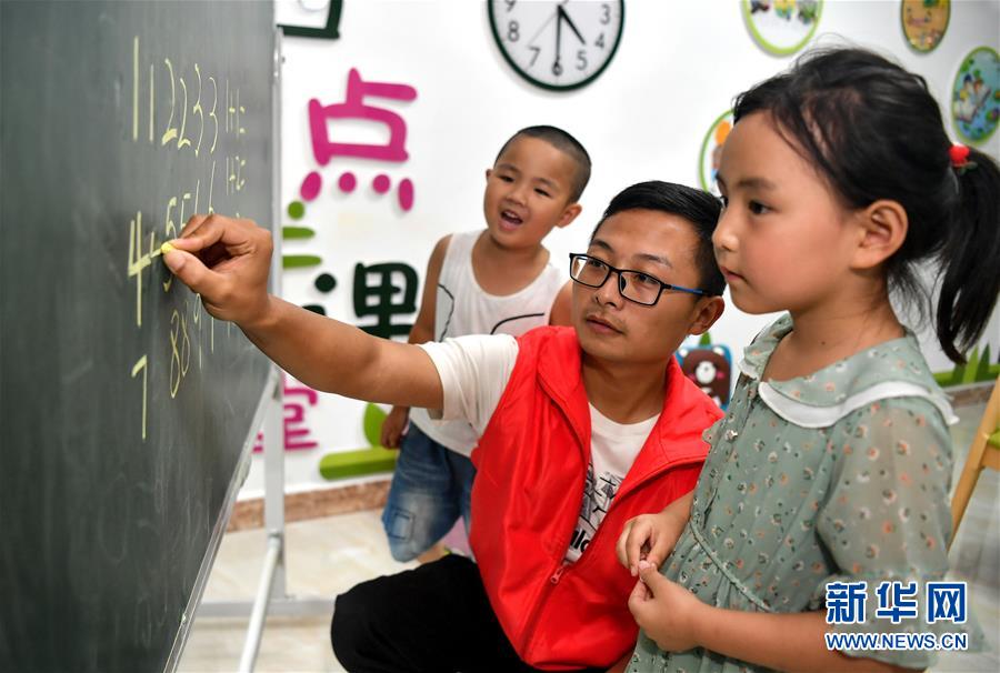 陜西安康市嵐皋縣城關(guān)鎮(zhèn)城北易地扶貧搬遷安置小區(qū)“四點(diǎn)半課堂”的老師在輔導(dǎo)孩子們學(xué)習(xí)數(shù)字(7月29日攝)。地處秦巴山區(qū)的嵐皋縣山多溝深,群眾居住分散,長(zhǎng)期以來(lái)易地搬遷成為這里脫貧攻堅(jiān)的重點(diǎn)。為避免易地搬遷群眾就業(yè)不充分、辦事不方便、管理不到位等問(wèn)題,嵐皋縣依托市場(chǎng)完善社區(qū)生活、醫(yī)療、教育、娛樂(lè)等服務(wù)設(shè)施,并開(kāi)展技能培訓(xùn)、開(kāi)辦社區(qū)工廠,讓搬遷居民“穩(wěn)得住”“能致富”。新華社記者劉瀟攝。