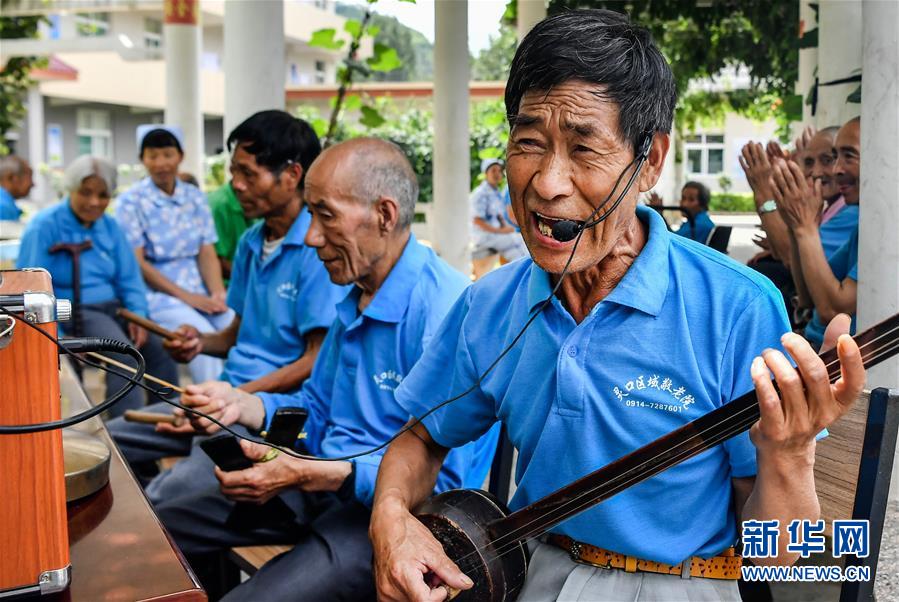 陜西商洛市洛南縣靈口區(qū)域敬老院的老人們?cè)诔o板書(7月28日攝)。據(jù)了解,陜西洛南縣目前共有9所敬老院,設(shè)置床位760張,對(duì)全縣愿意到敬老院的381名農(nóng)村特困人員實(shí)行集中供養(yǎng)政策。新華社記者劉瀟攝。