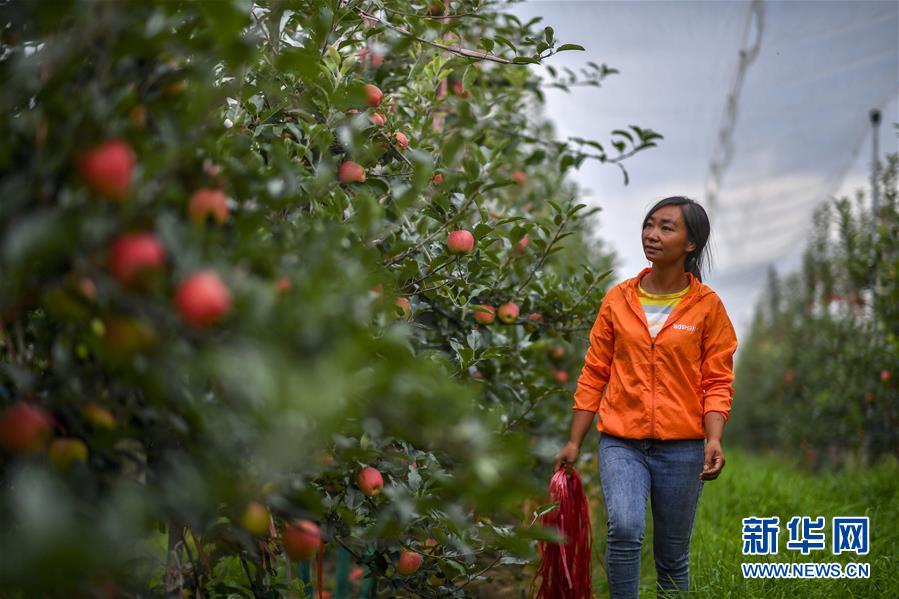 8月8日,昭通超越萬畝蘋果基地工人甄全米在蘋果園工作。近年來,云南省昭通市確立以蘋果產(chǎn)業(yè)為主導的現(xiàn)代農(nóng)業(yè)產(chǎn)業(yè)發(fā)展戰(zhàn)略。目前,該市蘋果種植面積近80萬畝,覆蓋全市20余個鄉(xiāng)鎮(zhèn),果農(nóng)種植蘋果年人均收入4000元以上,推動30多萬果農(nóng)依托蘋果產(chǎn)業(yè)實現(xiàn)脫貧致富,半城蘋果滿城香的“蘋果之城”正在烏蒙山區(qū)奮力崛起。新華社記者江文耀攝。