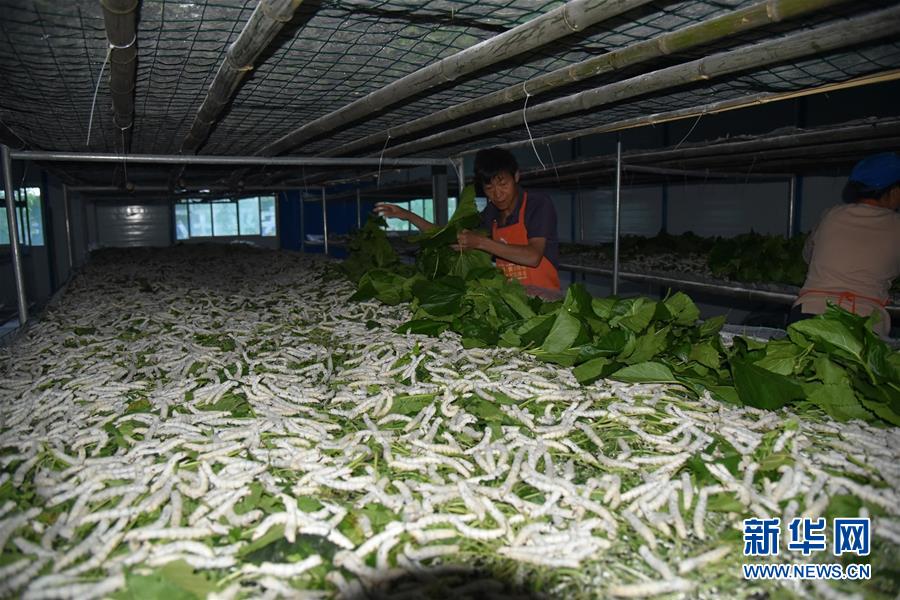 貴州省畢節(jié)市納雍縣勺窩鎮(zhèn)務井村桑蠶集中飼養(yǎng)點(7月21日拍攝)。新華社記者駱飛攝。