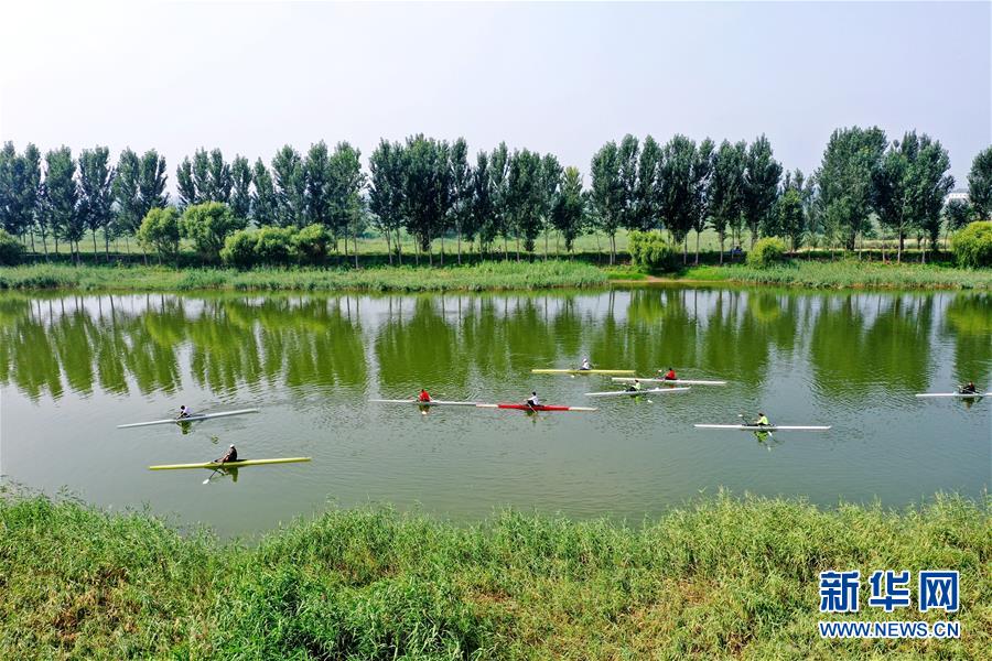 8月11日,廊坊市體育運(yùn)動(dòng)學(xué)校皮劃艇訓(xùn)練隊(duì)在龍河進(jìn)行訓(xùn)練(無(wú)人機(jī)照片)。近年來,河北省廊坊市安次區(qū)統(tǒng)籌推進(jìn)污水處理、飲水安全、景觀提升等水環(huán)境綜合治理工程,積極進(jìn)行全域水生態(tài)建設(shè),打造“水清、河暢、景美”的美麗水環(huán)境,為市民建設(shè)生態(tài)美好家園。新華社記者王曉攝