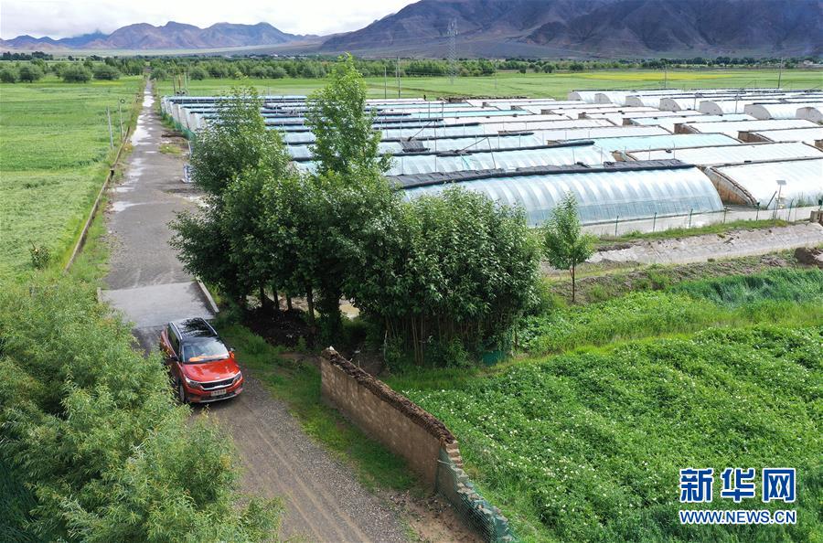 姐妹倆開著剛買的小汽車將大棚出產(chǎn)的蔬菜運往縣里的店鋪(無人機照片,8月3日攝)。新華社記者 李賀 攝