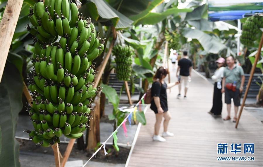在吉林省永吉縣萬昌鎮(zhèn)宇豐紅果木瓜產(chǎn)業(yè)園,游客在大棚內(nèi)合影留念(8月12日攝)。新華社記者 許暢 攝