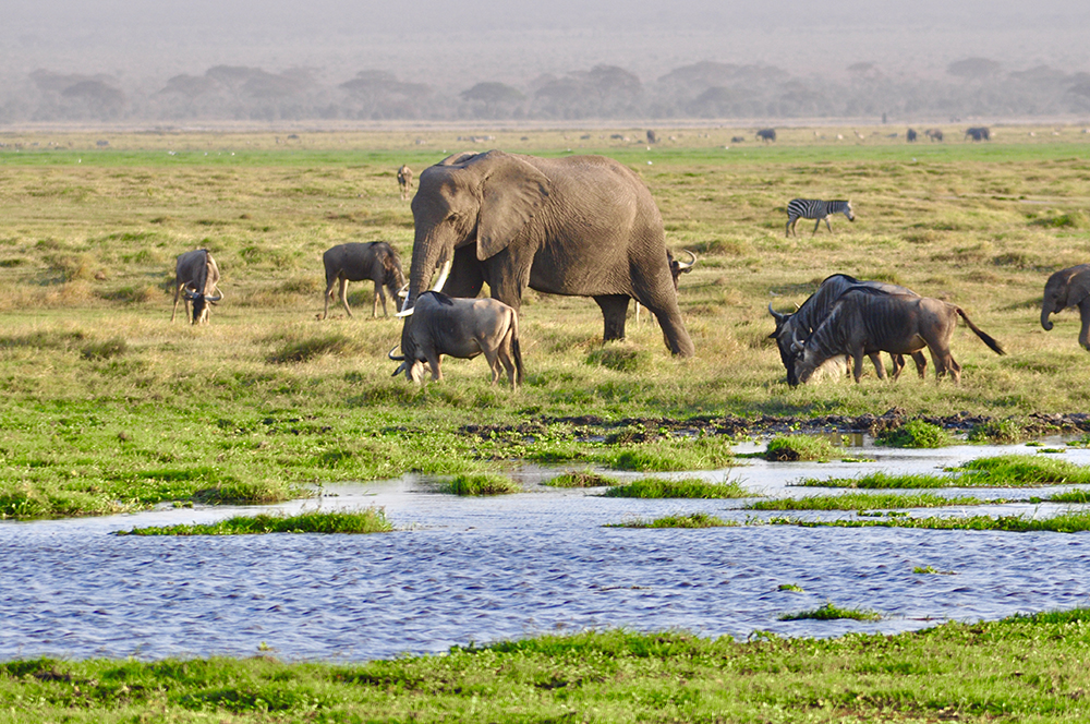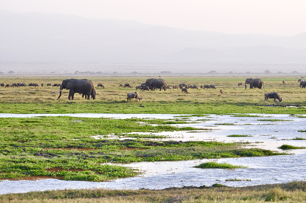如今在肯尼亞,大象已經(jīng)受到最為嚴(yán)格的保護(hù),安博塞利國(guó)家公園就是一座野生草原象的保護(hù)地。圖為野生大象家園里的大象。李仁奇 攝