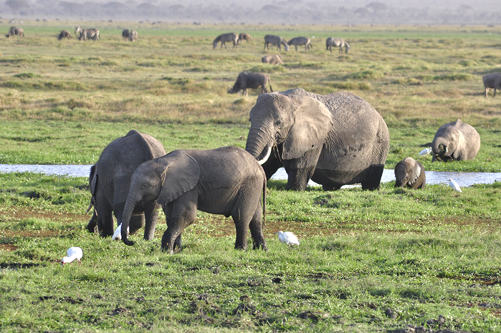 安博塞利國(guó)家公園的象群屬于草原象。圖為野生大象家園里的大象。李仁奇 攝