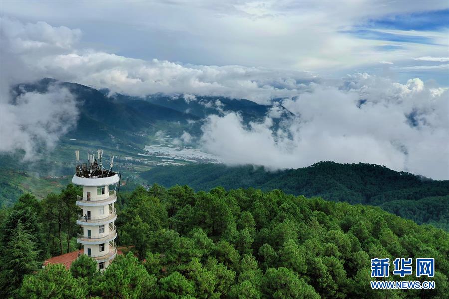 邛海瀘山國家級(jí)風(fēng)景名勝區(qū)掩映在云霧中(8月13日攝,無人機(jī)照片)。 新華社記者 李賀 攝
