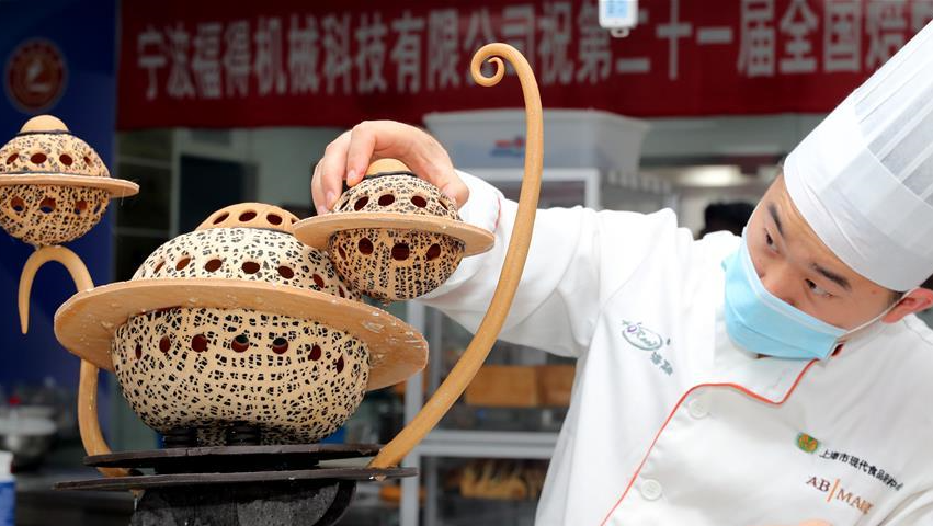 當(dāng)日,第二十一屆全國焙烤職業(yè)技能競賽上海賽區(qū)選拔賽,在上海市現(xiàn)代食品職業(yè)技能培訓(xùn)中心舉行,來自上海、江蘇、浙江等地的近60名焙烤行業(yè)技師,在藝術(shù)面包、傳統(tǒng)糕點、糖藝和藝術(shù)巧克力等項目中進(jìn)行比拼,在充滿焙烤香氣的賽場上展現(xiàn)技藝。