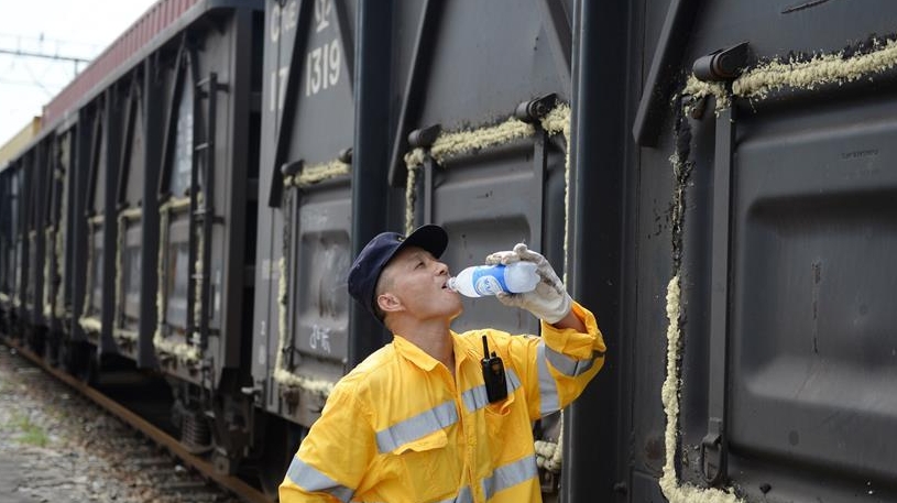 在中國鐵路上海局集團(tuán)有限公司杭州北車輛段合肥運用車間,386名列車檢修工人頭頂烈日堅守崗位,確保暑運列車的安全運行。