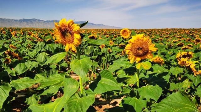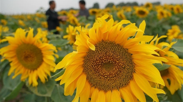 初秋時節(jié),位于甘肅省白銀市景泰縣寺灘鄉(xiāng)的十萬畝向日葵競相綻放,金黃的葵花張開“笑臉”,迎接豐收。