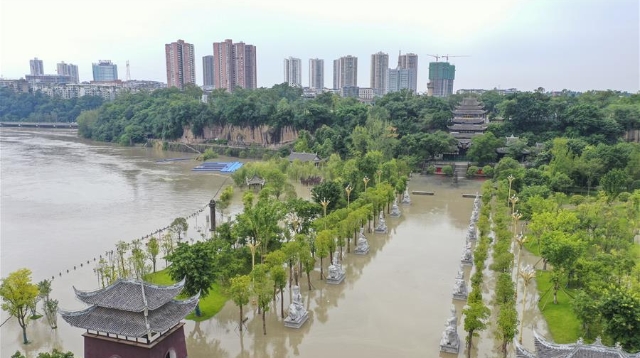 受強降雨影響,涪江潼南段迎來過境洪水。截至12日下午5時,涪江潼南城區(qū)段最高水位238.5米,超警戒水位0.5米,低于保證水位(240米)。