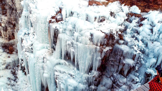 1月12日,河北省涉縣太行五指山景區(qū)出現(xiàn)冰瀑景觀,吸引眾多游客到此觀賞。