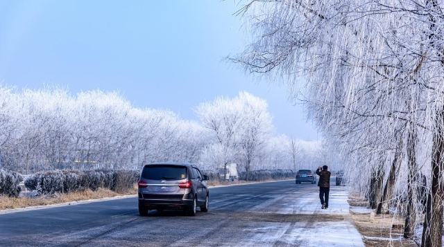 河北定州現(xiàn)霧凇景觀 吸引路人駐足拍照留念