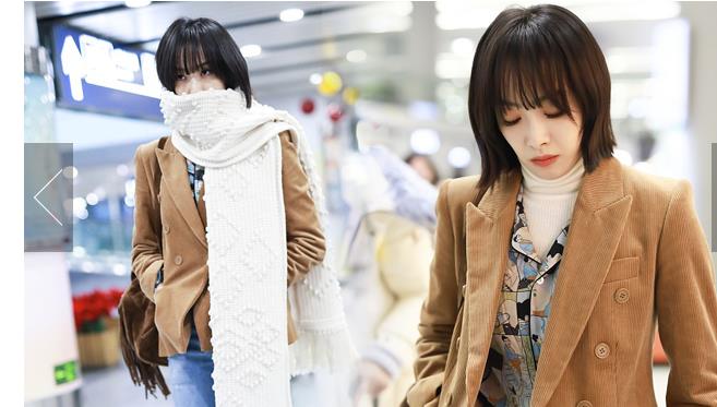 秦嵐潮味棉服亮相機(jī)場 口罩遮面露甜笑