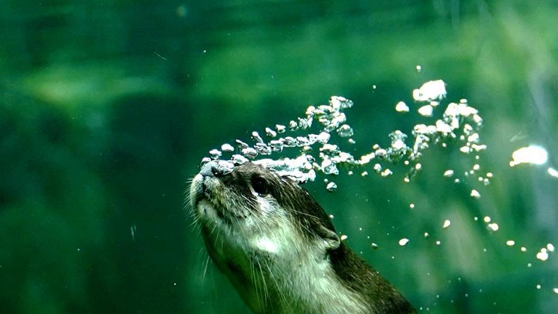 6月10日在上海動(dòng)物園拍攝的小爪水獺。