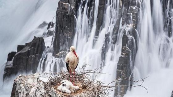 4月22日,一群天鵝在沽源縣閃電河國家級(jí)濕地公園的天鵝湖覓食。