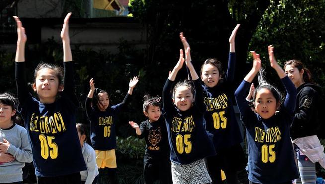 武漢江漢路步行街上,兩名年輕女性用外套遮擋火辣的陽光。當(dāng)日,武漢主城區(qū)最高氣溫已達(dá)30攝氏度。