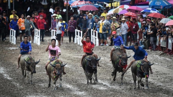 泰國(guó)春武里舉行年度水牛賽跑