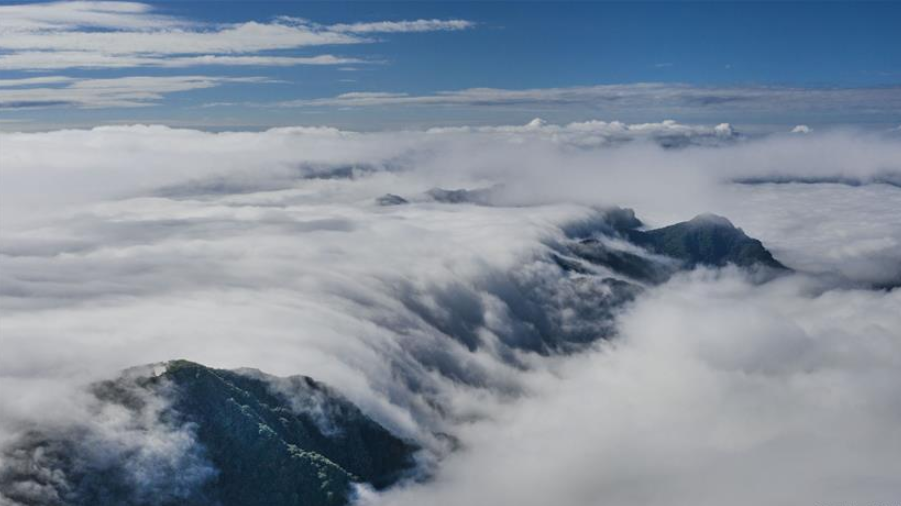 6月10日拍攝的漢中市南鄭區(qū)龍頭山景區(qū)的云海景觀(無(wú)人機(jī)照片)。