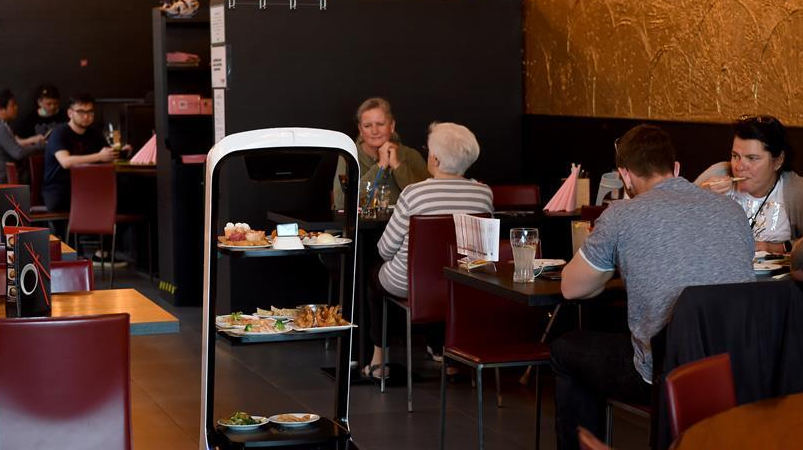 維也納的一家亞洲餐廳于疫情期間重新營業(yè)后,更多利用機器人上菜,以減少服務員和顧客之間的非必要接觸。