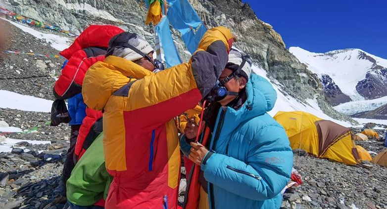 2020珠峰高程測量登山隊抵達海拔6500米的前進營地