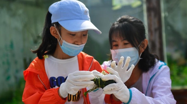6月25日是端午節(jié),青海省西寧野生動物園組織小朋友們?yōu)閯游飯@內的靈長類動物包粽子,讓動物們也享用端午節(jié)傳統(tǒng)“美味”。