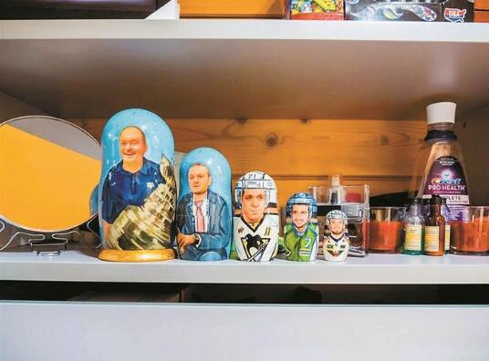 說(shuō)起來(lái),老烏沙科夫和中國(guó)也有點(diǎn)緣分,因?yàn)樗膬合眿D是一位來(lái)自中國(guó)杭州的女孩。烏沙科夫的家處于莫斯科郊外的富人區(qū),其實(shí)當(dāng)你踏入他家大門(mén),就能立刻感覺(jué)踏入了一個(gè)冰球運(yùn)動(dòng)員的世界。墻角里擺放著的全是冰球桿,家里的各種裝飾也都是由冰球桿以及各種海報(bào)組成的。最有趣的是,套娃和伏特加酒瓶上,都特別定制著老人的照片?!斑@個(gè)很棒!”記者指著套娃說(shuō)道,而老烏沙科夫聳聳肩,表示很淡定。