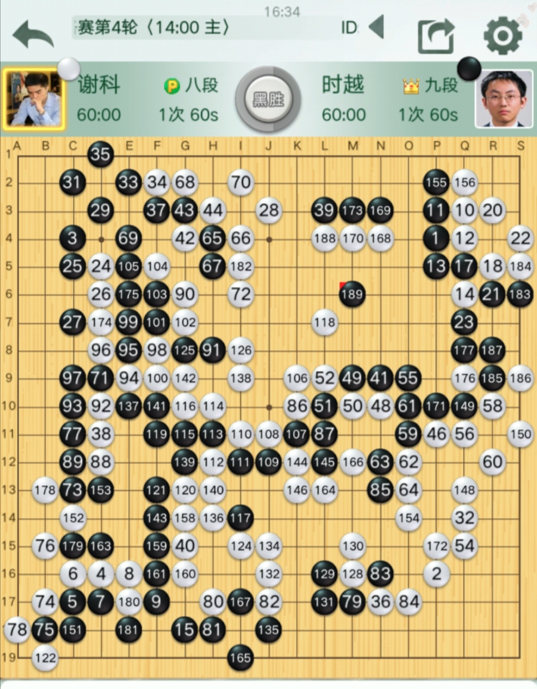 第二臺主將之戰(zhàn)謝科八段VS時越九段(對陣棋譜),時越最后勝出。時越首輪逆襲勝排名第二的楊鼎新九段,本輪再度逆襲得手,倒春寒味道十足。白棋耗費心力經(jīng)營中腹,但因黑棋在邊空所得更大,白棋大模樣作戰(zhàn)失敗。之后黑棋守牢己方大空,相機壓縮白棋中腹模樣,白棋實空“干不夠”,直至認輸。