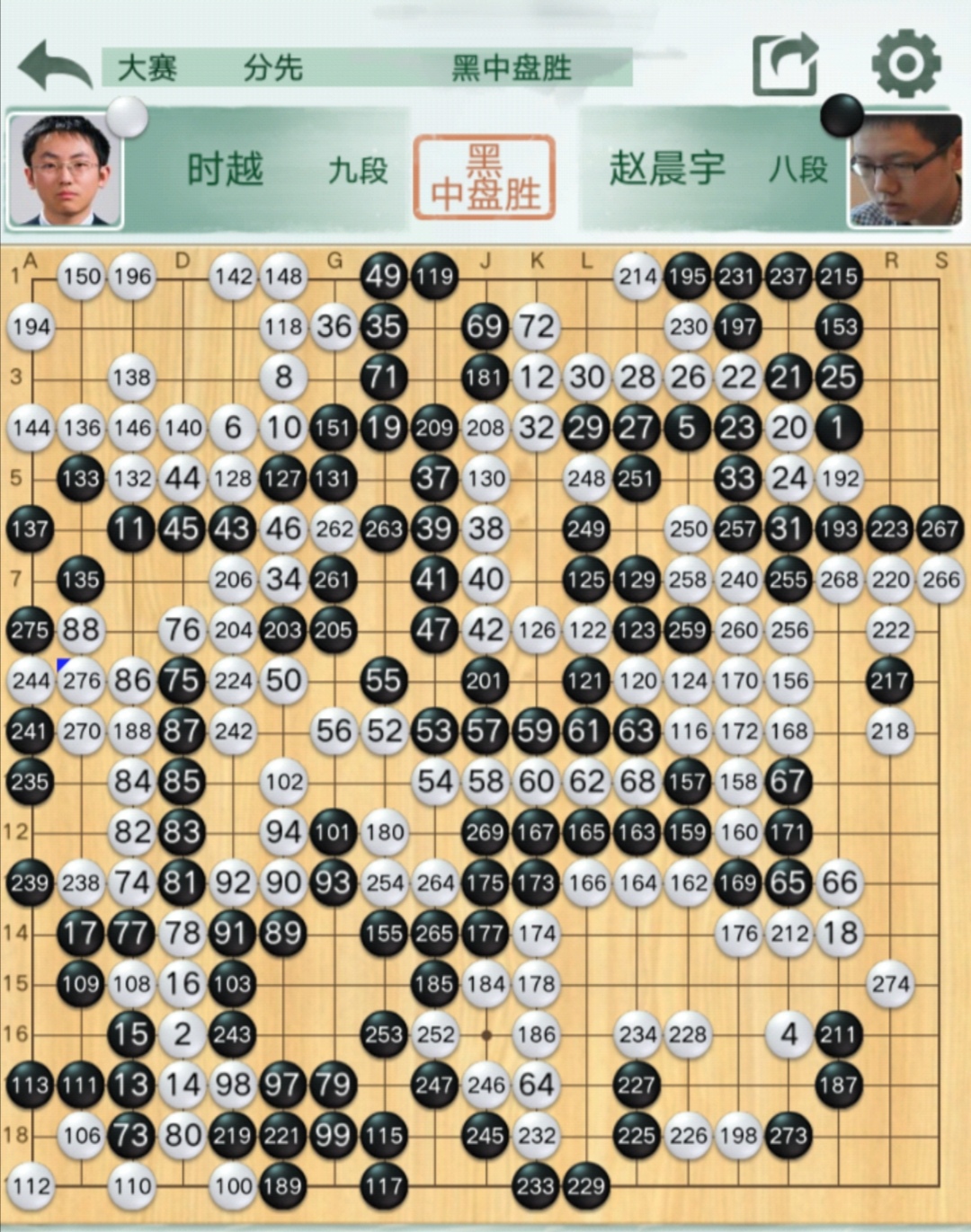 二臺(主將):時越九段執(zhí)白(負)趙晨宇八段