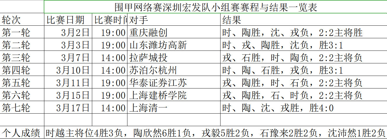 附1:《圍甲網(wǎng)絡(luò)賽深圳宏發(fā)隊小組賽賽程與結(jié)果一覽表》
