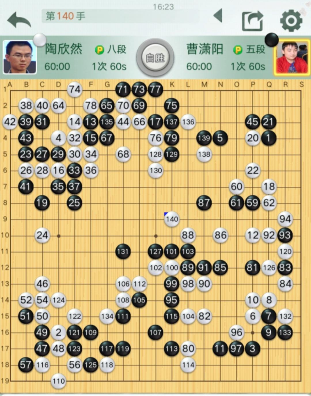 四臺:陶欣然八段對曹瀟陽五段。