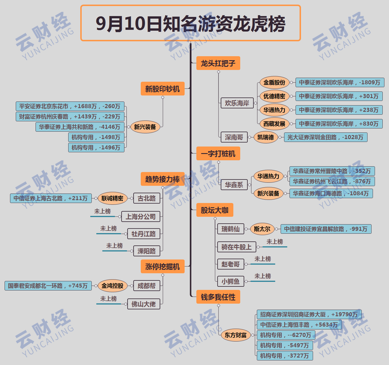 其他知名游資今日上榜不多,深南哥賣出凱瑞德(002072)1028萬,瑞鶴仙991萬砸盤斯太爾(000760),成都幫買入金鴻控股(000669)745萬。