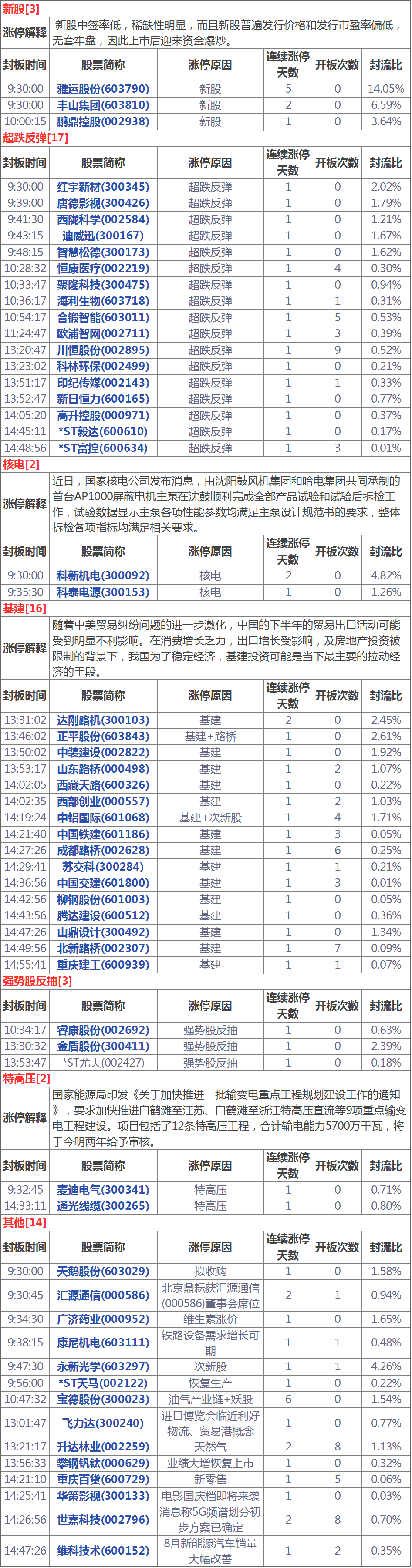 漲停分析:指數(shù)午后拉升 大基建多股漲停 (9月18日)