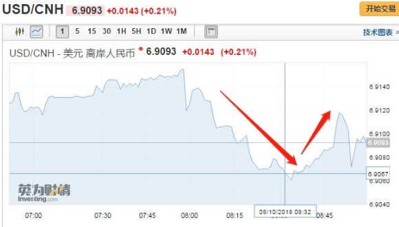智通財(cái)經(jīng)APP獲悉,離岸人民幣兌美元亞市早盤一度跌逾200點(diǎn),報(bào)6.9155,后短線快速拉升約50點(diǎn)。截至發(fā)稿,報(bào)6.9093,跌143點(diǎn)子,跌幅0.21%。