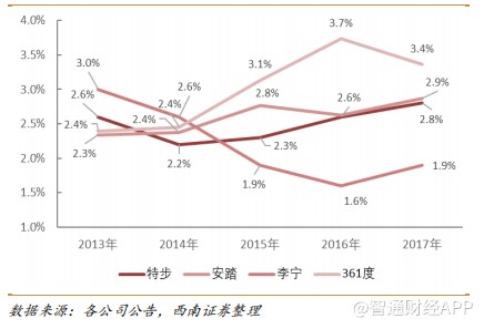 其邏輯之一是,特步在2015年開啟變革之后,從品牌定位、產(chǎn)品、渠道、運(yùn)營四方面進(jìn)行了全方位變革,公司從一家產(chǎn)品公司轉(zhuǎn)型為一家品牌公司。2017年末,公司用1.2億元一次性回購2015年前生產(chǎn)的產(chǎn)品,徹底清除歷史包袱,為業(yè)績反轉(zhuǎn)奠定基礎(chǔ)。