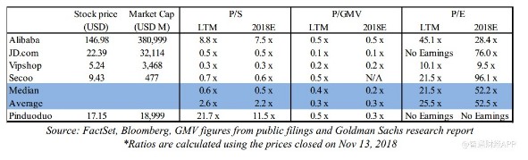 拼多多截至2018年第二季度的12個(gè)月市銷率為21.7倍,是行業(yè)巨頭阿里巴巴(8.8倍)的兩倍有余,也是京東(0.5倍)等更成熟的中國電子商務(wù)企業(yè)的44倍之多。京東的大部分收入來自直銷,而非商家服務(wù),因此這種對比并不完美,但這只是一個(gè)例證。若按照2018年的市盈率計(jì)算,與阿里巴巴和其他中國電子商務(wù)公司相比,拼多多的股價(jià)仍然顯得非常昂貴(11.5倍)。
