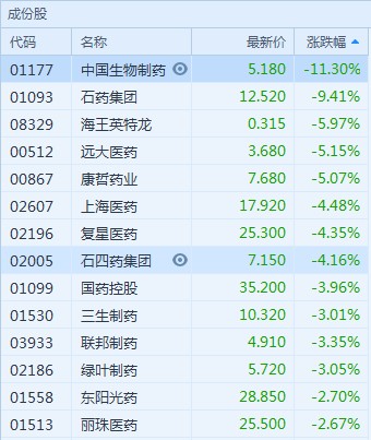 此外,4+7帶量采購(gòu)預(yù)中選結(jié)果出爐,最大降價(jià)幅度超90%。醫(yī)藥股受帶量采購(gòu)消息刺激,昨日遭重創(chuàng),早盤(pán)醫(yī)藥依然出現(xiàn)不同程度下跌。(王岳川)