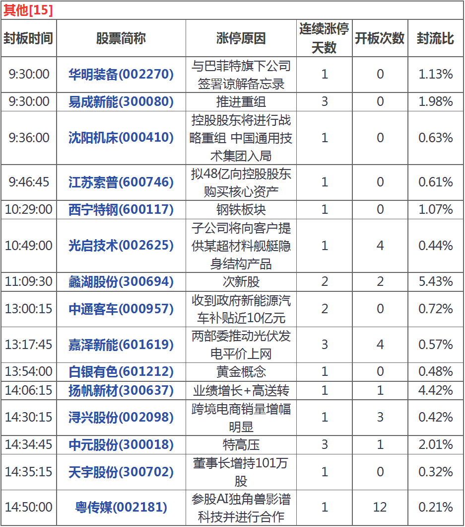 今天漲停家數(shù)較上一交易日有所減少,兩市45家漲停;跌停15家。成交量方面,滬市成交1162億元,深市成交1669億元,兩市總成交額約為2831元,較上一交易日縮量131億元。盤面上,鋼鐵、氫燃料電池、煤炭導(dǎo)等板塊漲幅居前,次新股、半導(dǎo)體、國防軍工等板塊跌幅居前。
