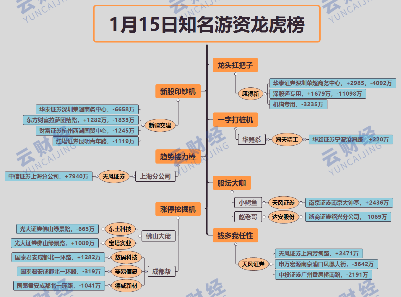 其他游資方面,趙老哥賣出達安股份(300635)1069萬,佛山幫買入寶塔實業(yè)(000595)1089萬,賣出東土科技(300353)665萬,成都幫買入數(shù)碼科技(300079)1282萬,割肉賣出德威新材(300325)1041萬。
