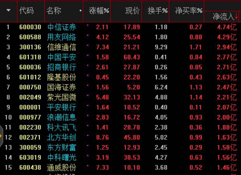 資金流向看科技股受到資金追捧、大基建、周期行業(yè)資金流出明顯。