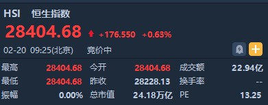 智通財經(jīng)APP獲悉,恒生指數(shù)開盤漲0.63%,報28404.68點(diǎn)。國企指數(shù)漲0.78%,報11203.52點(diǎn)。紅籌指數(shù)漲0.55%,報4503.48點(diǎn)。大市盤前成交22.94億港元。隔夜美股方面,納指、標(biāo)指微漲,道指近乎平收,港股ADR指數(shù)全日走好。
