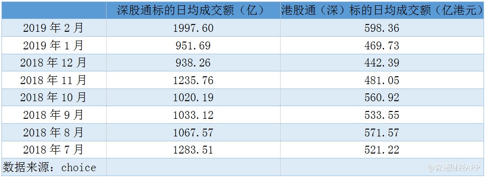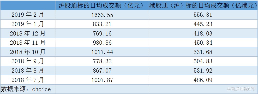 伴隨著股市上漲的,是兩地資本互通的熱度。據(jù)智通財(cái)經(jīng)APP統(tǒng)計(jì),北上資金方面,2019年2月,滬(深)股通標(biāo)的日均成交額分別為1663.55億、1997.6億;南下資金方面,滬(深)港股通日均成交額分別為556.31億、598.36億,均相較于其他月份顯著放大。